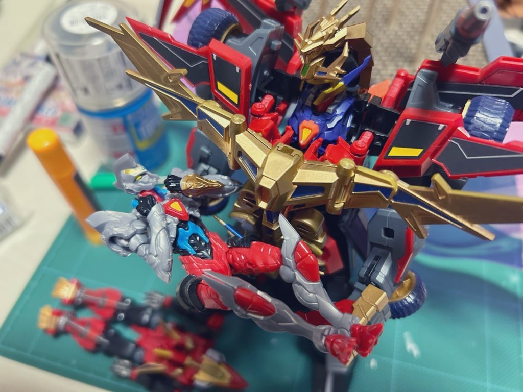 夏くらいからSSSS関連のプラモデルを組んでいました。グリッドナイト同盟のガレージキットを作る前の準備運動ですね。だけど一番のきっかけは、アカネニューオーダーのプラモ製品版が想像より色分けされていて「これなら作れるかも」と思えたからです。塗装しなくてもスカートの金模様がほとんど再現されているのは強かった。